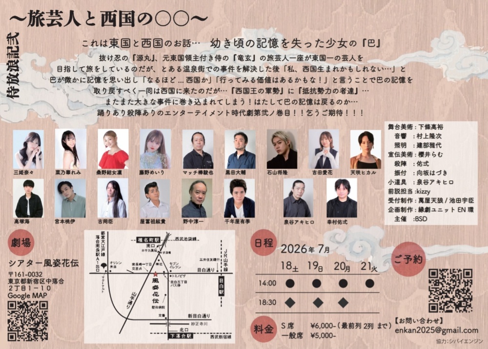 <2025年始動<2025年6/12(木)~15(日)旗揚げ公演 侍放浪記~旅芸人と温泉街~<2026年夏頃公演予定